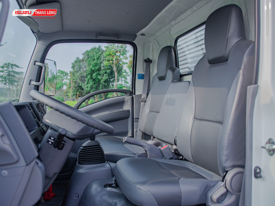 Ghế ngồi xe tải Isuzu 2.5 tấn QKR270 được bọc da cao cấp có màu xám ghi sang trọng. Sạch sẽ dễ dàng vệ sinh.
